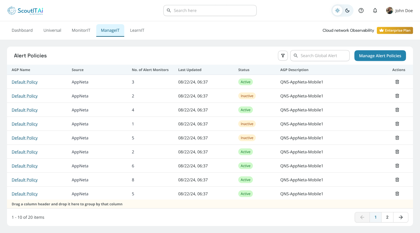• All AGPs will be listed on the Manage Alert Global Policies screen.